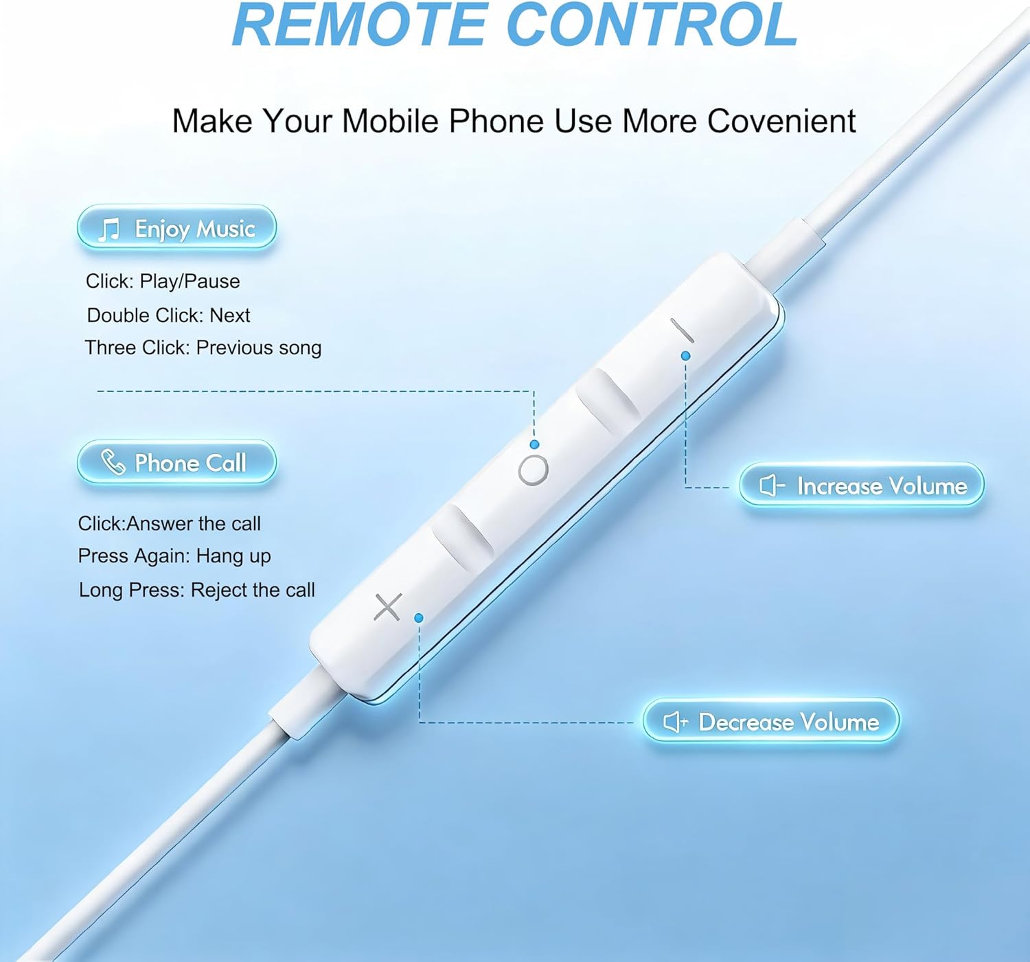 ♫【Built-in Mic and Remote Control】The earphone cable has a microphone and a controller without having to control through your phone.which makes it more convenient for you to answer / hang up the phone during busy work. And you can more easily choose to play/pause audio or switch to the next/previous track to enjoy music.