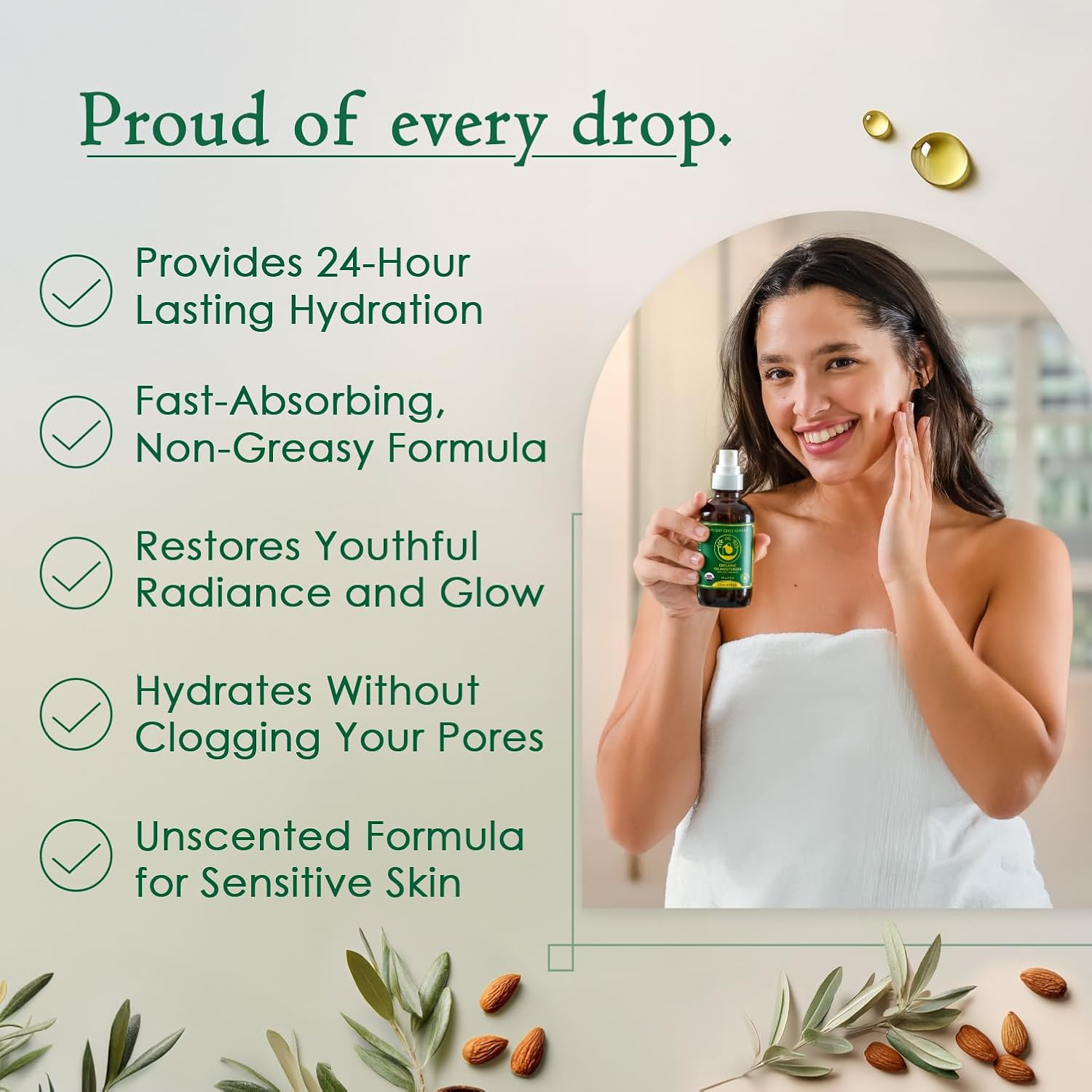 Triple-Oil Synergy Formula: Cold-pressed jojoba. rosehip seed oil. and almond oil penetrate deeply for long-lasting hydration. This facial oil blend provides essential fatty acids. restoring elasticity and enhancing skin tone without clogging pores.