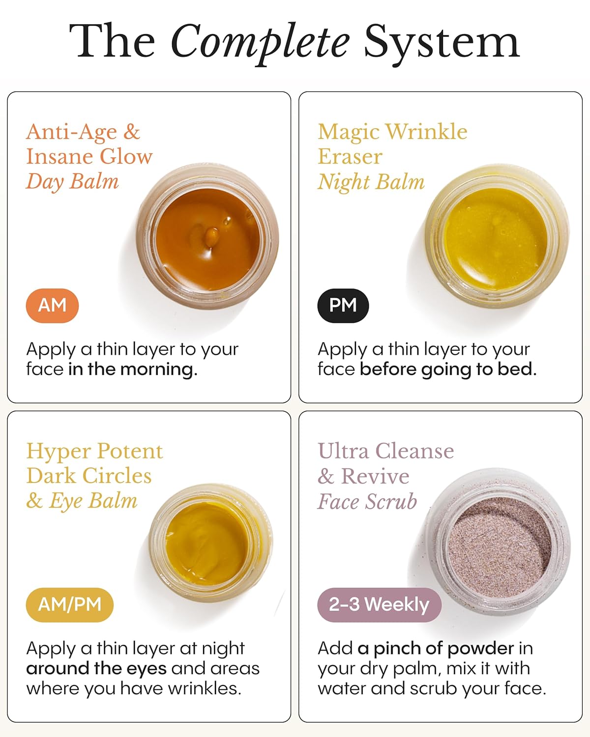 Fr酶ya Organics The Complete System for Mature Women鈥檚 Skin | 4-Piece Set with Face Scrub Day and Night Balm & Eye Bal
