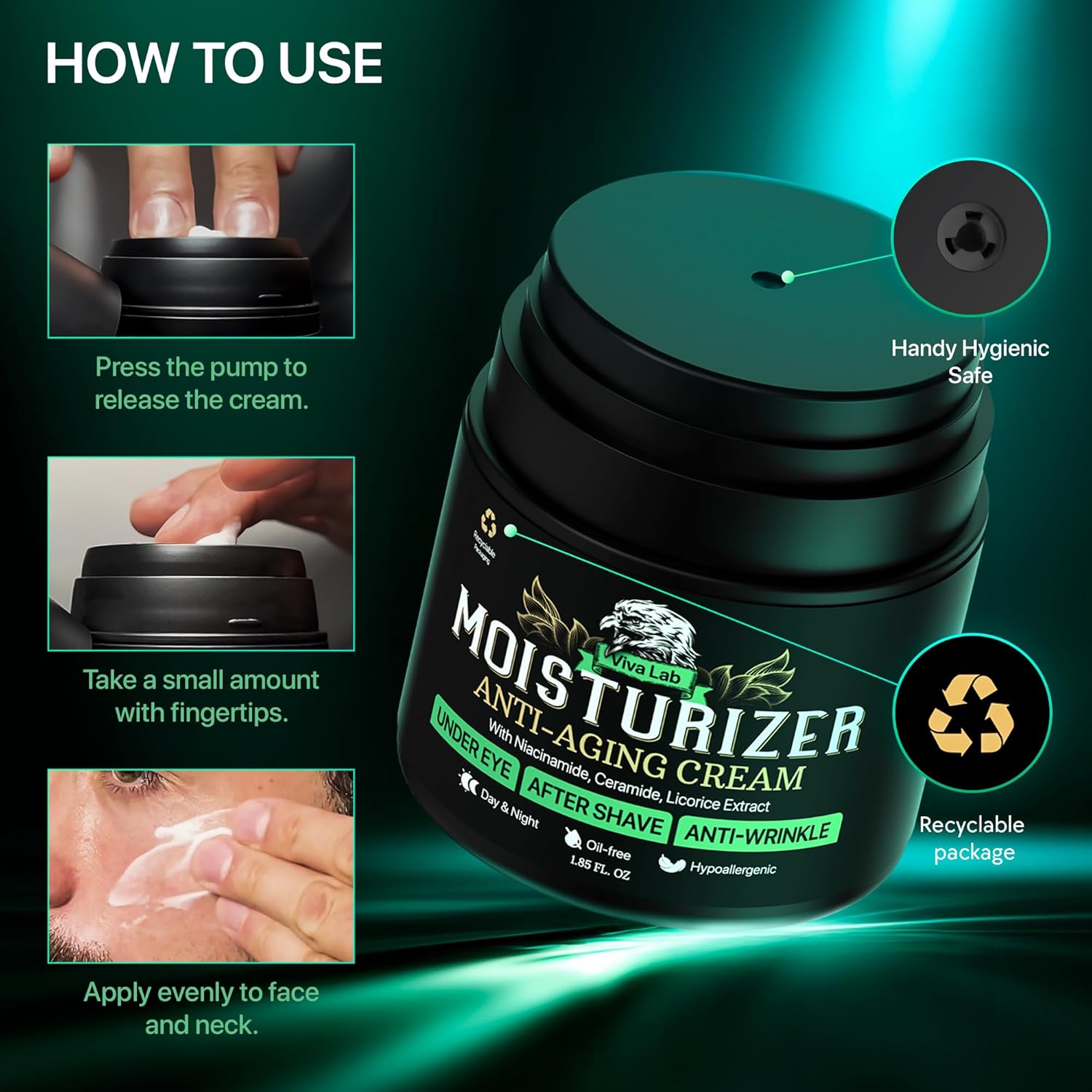Mens Face Moisturizer Anti-Aging Cream - Lightweight After Shave Lotion for Men - Day & Night Hydrating Skin Care with Niacinamide Collagen Ceramides - Fast-Absorbing Non-Greasy 1.85oz