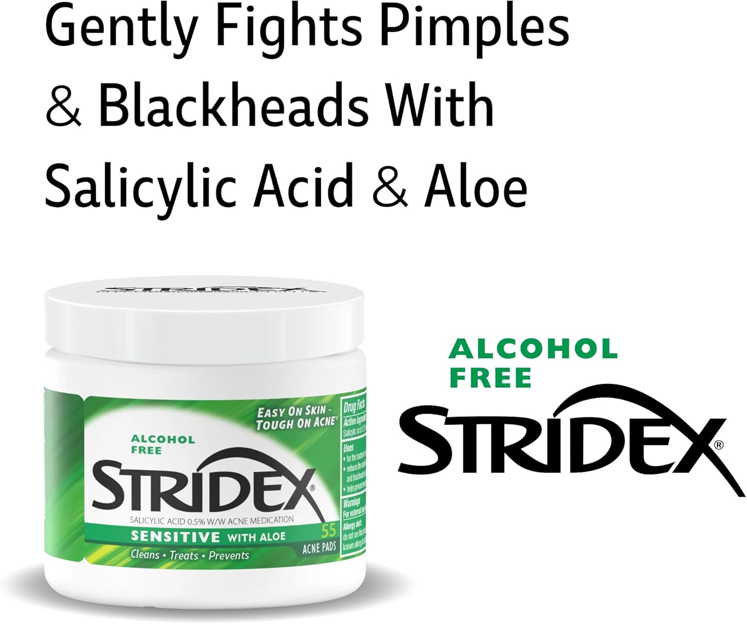 Stridex Acne Pads Sensitive With Aloe 55 Count Alcohol-Free