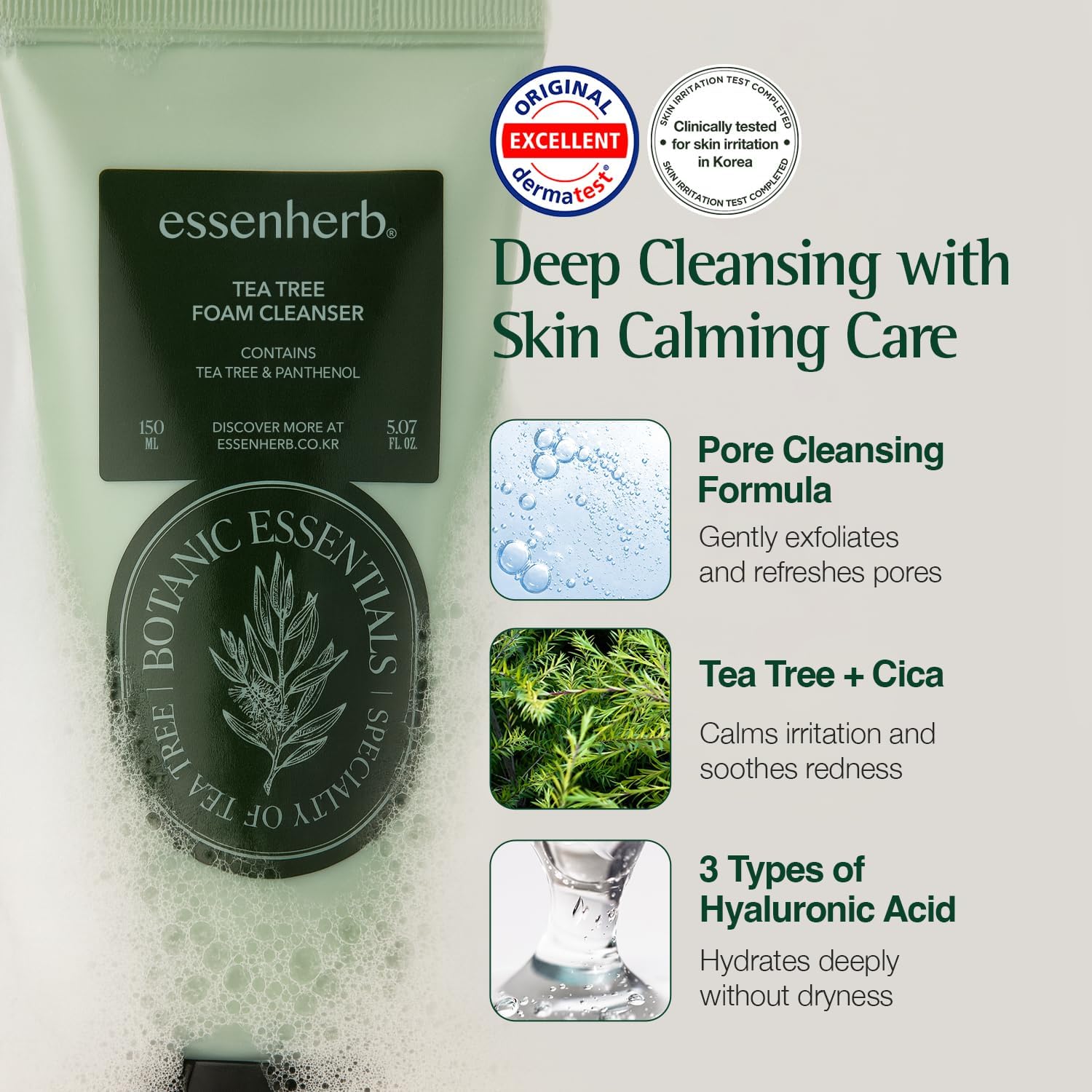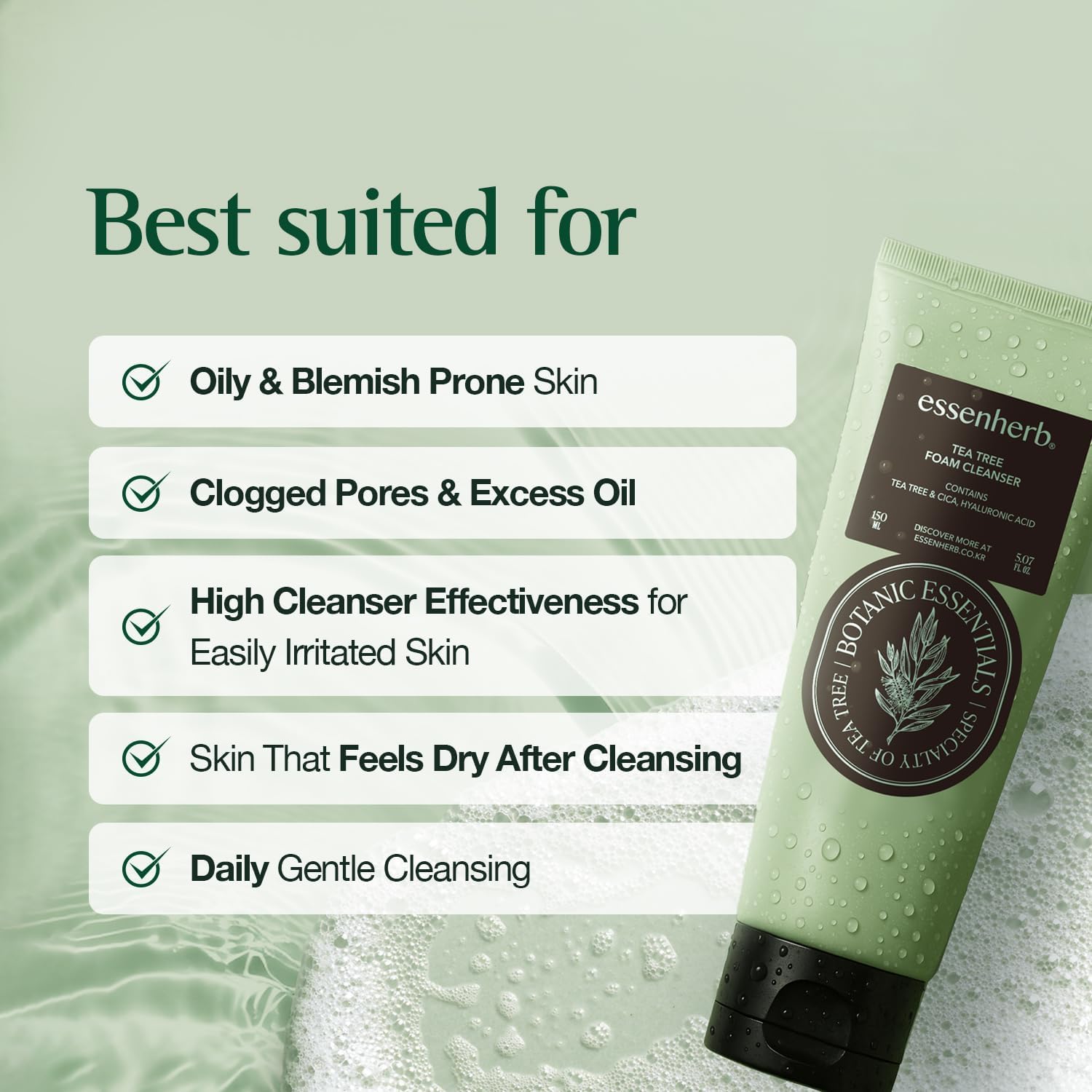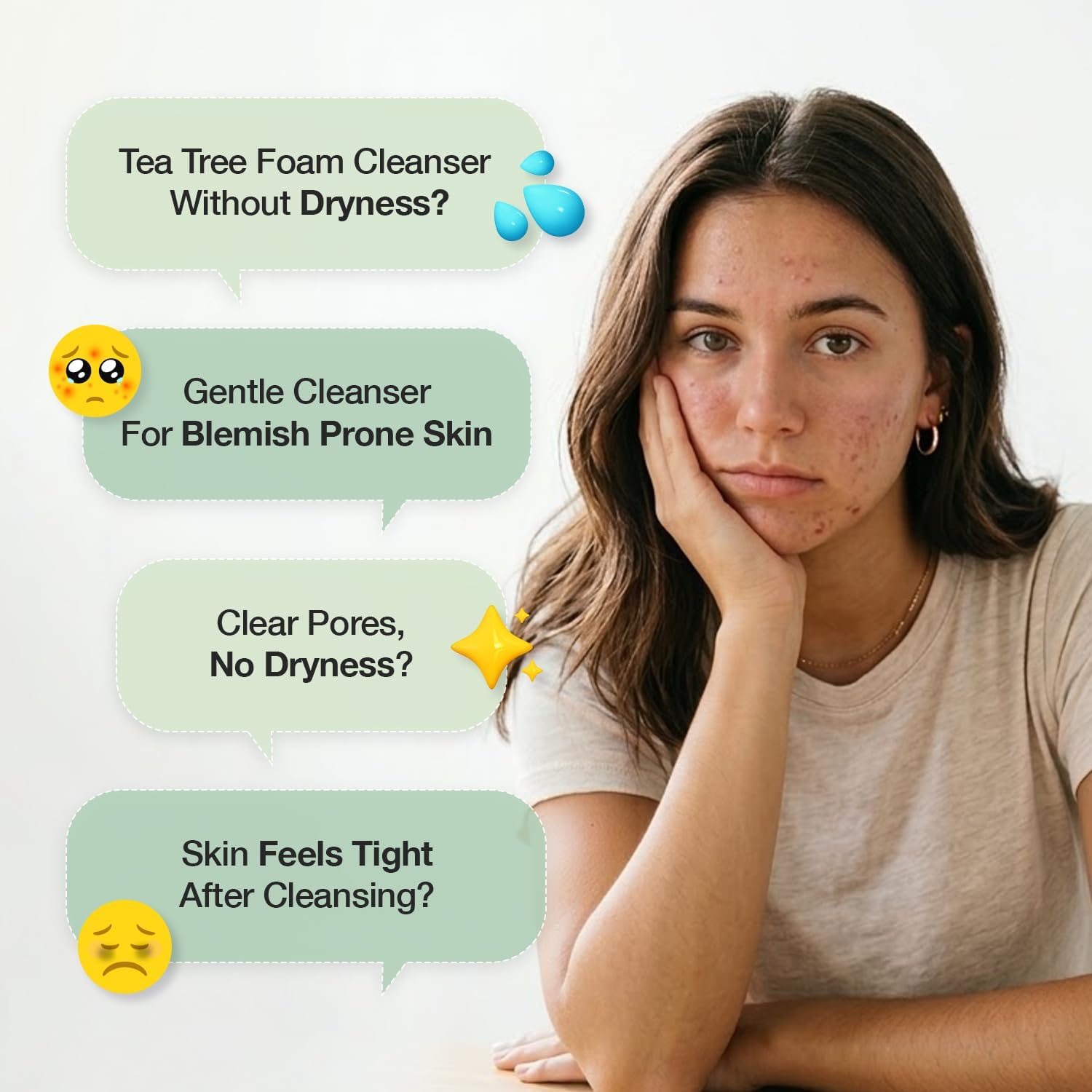 Tea Tree Foam Cleanser 鈥?Gentle Daily Face Wash for Acne-Prone & Sensitive Skin. Helps Soothe Redness and Hydrate. Formulated with Tea Tree and Cica. Korean Skin Care (5.07 fl oz)