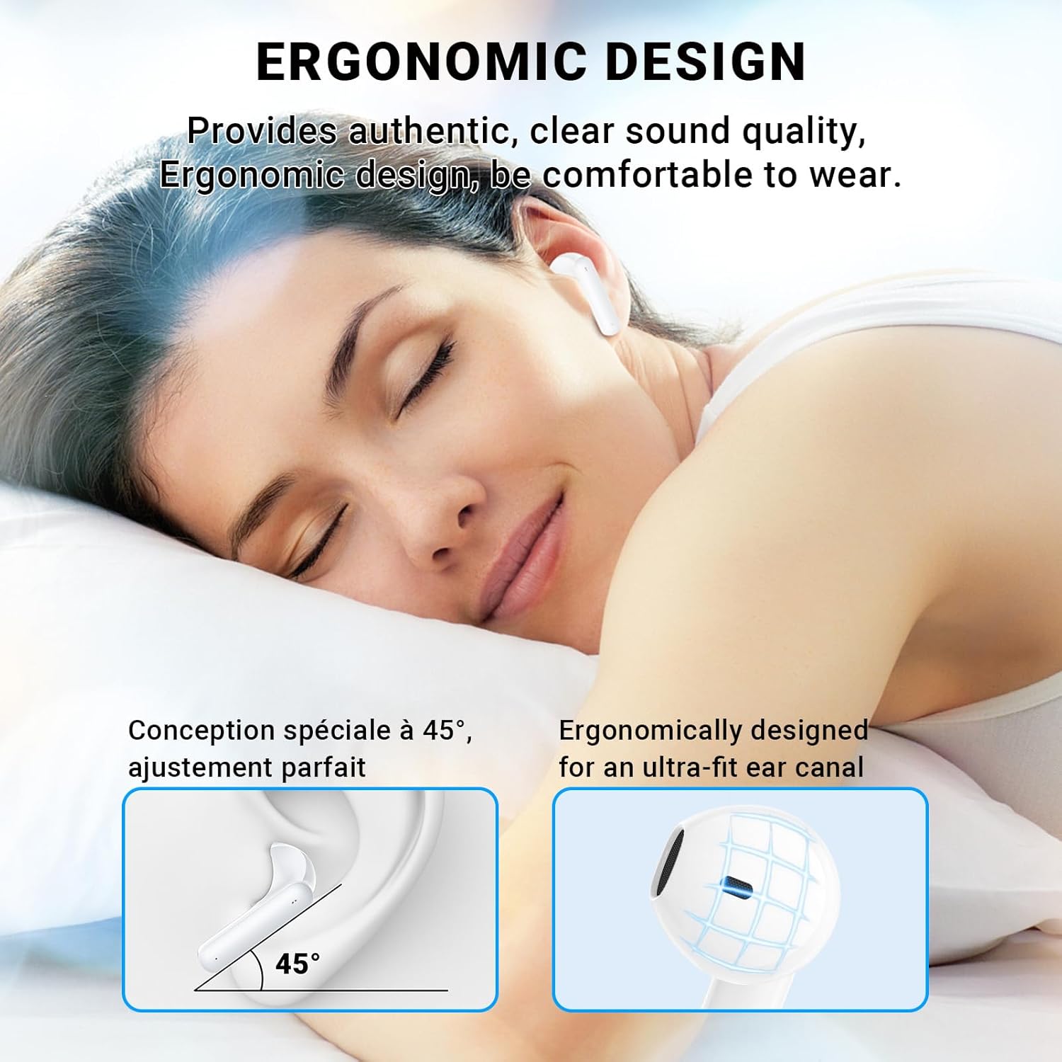 • 【ENC Clear Calls for Everyday Communication】Built-in ENC noise cancelling technology helps reduce background noise during calls. allowing your voice to sound clearer and more natural in meetings. commuting. video chats. and outdoor conversations. These wireless earbuds are designed to improve call quality in busy environments. making them ideal Bluetooth earbuds for work calls. remote meetings. travel. daily communication. and hands-free phone use at home or on the go.